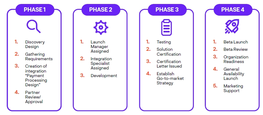 Integrating with our platform is a structured, phased journey designed to ensure a seamless experience from planning to production launch. The process is divided into four key phases, each focused on guiding you through specific integration aspects with the support of our dedicated teams.