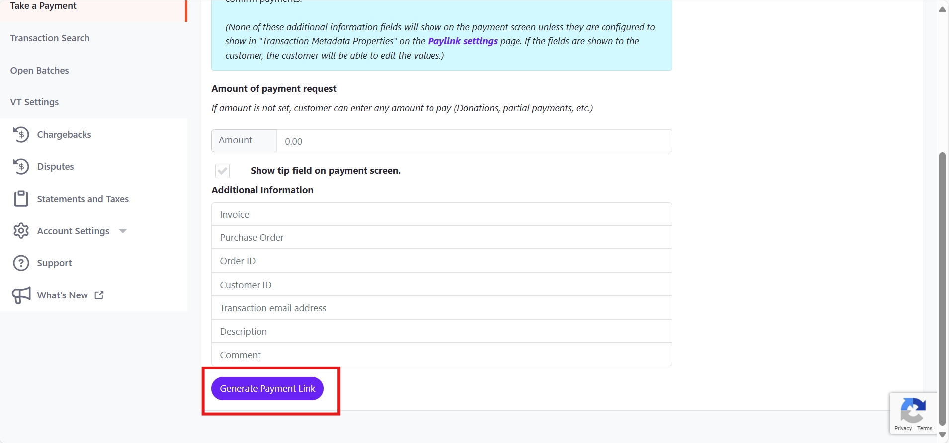 Enter the amount in the Amount field for it to appear on the payment page hosted on the Xplor Pay site. If the Amount field left blank, it remains editable for customers to enter an amount.