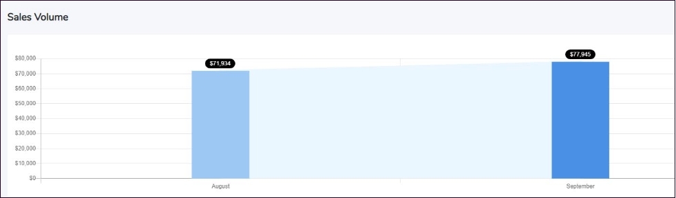 The Sales Volume Chart provides a visual representation of monthly sales trends. It helps merchants track their business performance over time by comparing revenue across different months. The chart highlights the total sales amount for each month, making it easy to identify growth patterns and business trends.