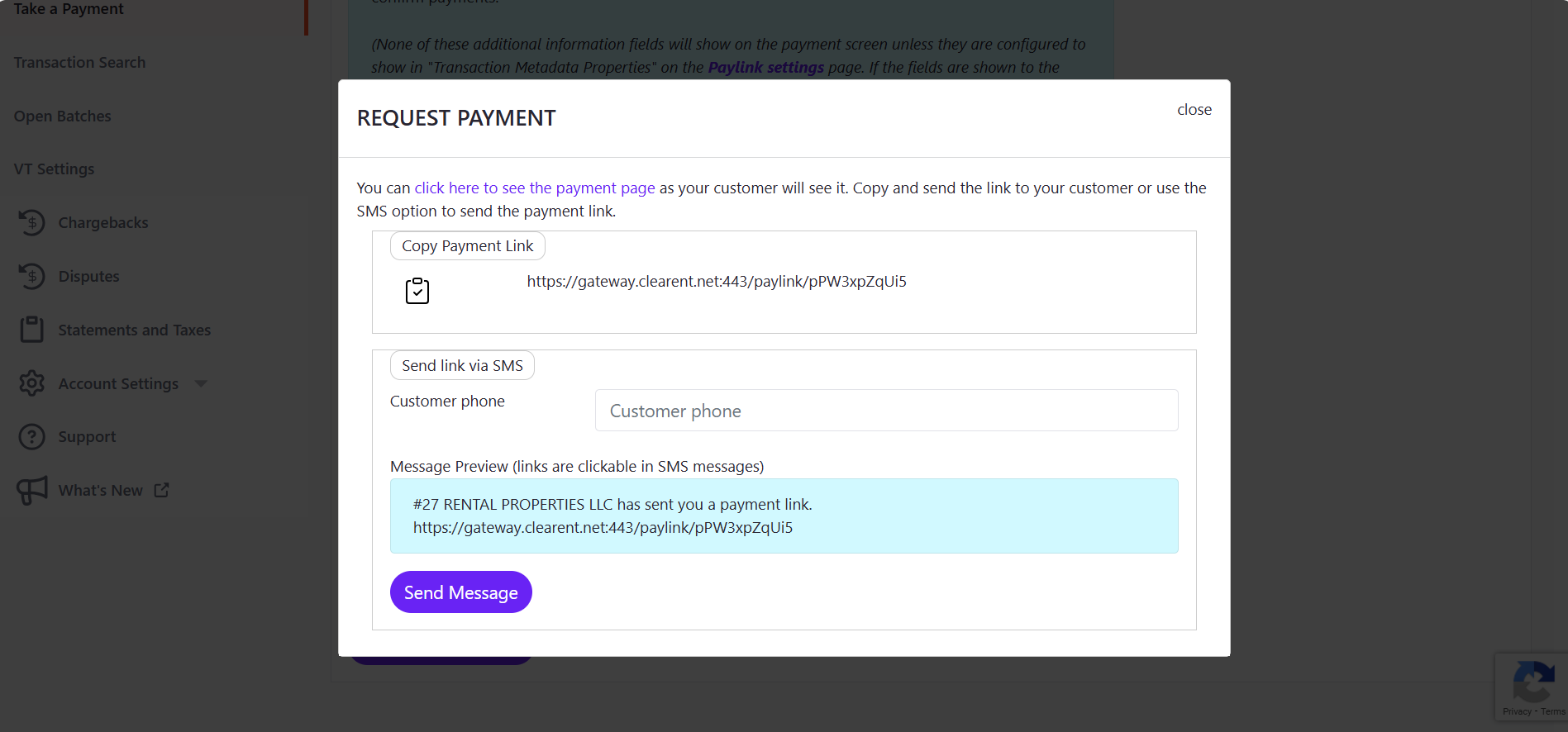 Customer Phone: Enter the customer’s phone number to send the payment link via message.