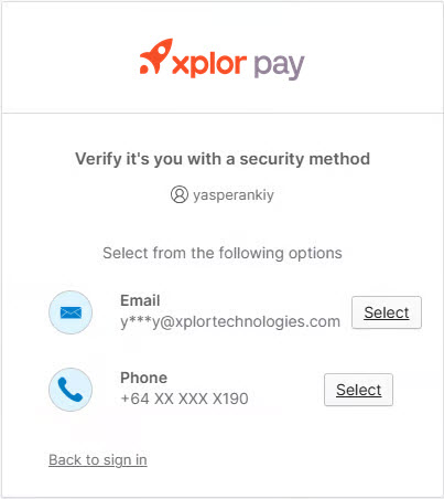 If you have multiple security methods configured (email and SMS), you can choose which method to use.