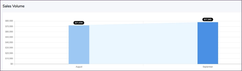 The Sales Volume chart provides a visual representation of monthly sales trends. It helps merchants track their business performance over time by comparing revenue across different months. The chart highlights the total sales amount for each month, making it easy to identify growth patterns and business trends.