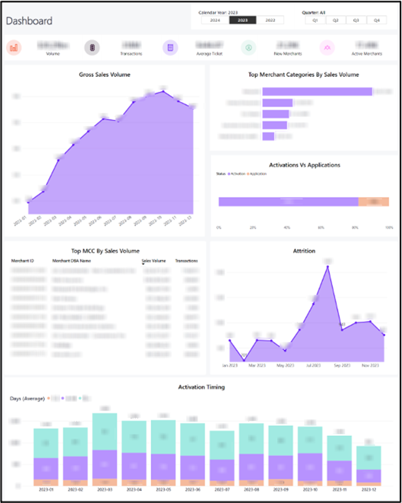 * **Sales volume dashboard** – Available to partners, delivering insights into sales trends, merchant activity, and portfolio growth.