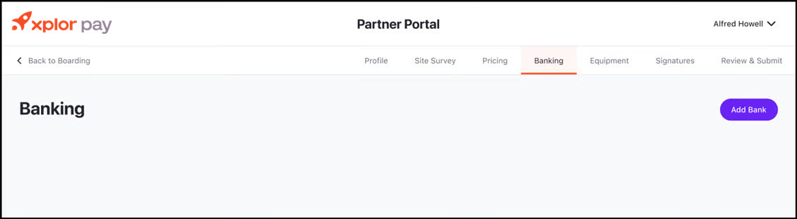 After completing the pricing step, users will be directed to the Banking page.